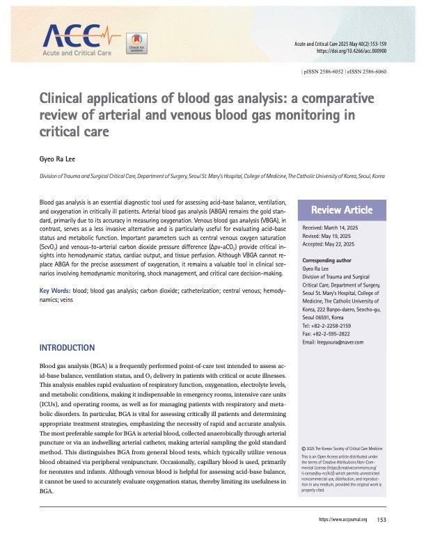 Clinical Application of Blood Gas Analysis