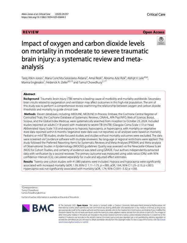 Impact of O2 and CO2 Levels on Mortality in Moderate to Severe TBI.